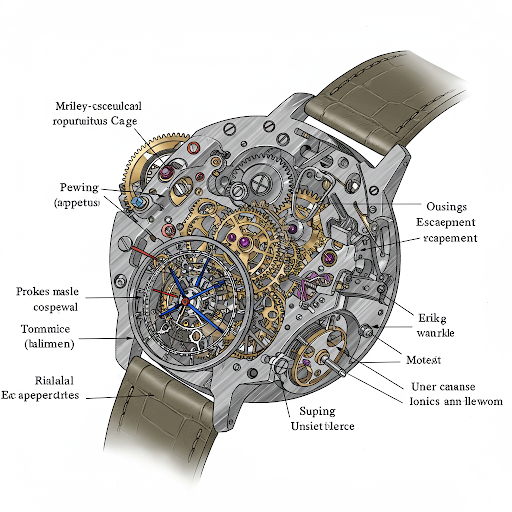 La solución ideada por Breguet fue revolucionaria: integrar el escape y el volante dentro de una jaula giratoria (a menudo denominada "Tourbillon Cage" en las imágenes). Esta jaula, impulsada por el movimiento del reloj, realiza una rotación continua sobre su propio eje. La velocidad de rotación más común es de una vuelta por minuto, aunque existen variaciones.